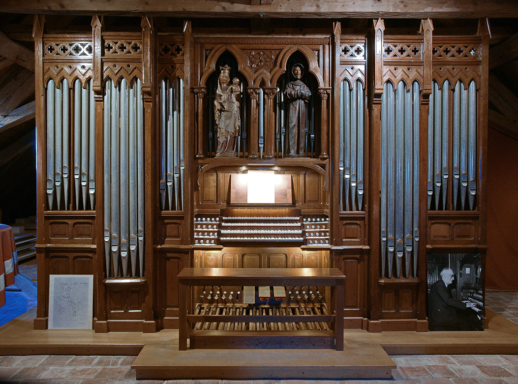 The Alain organ, a remarkable instrument, was built by Albert Alain, father of Jehan, Olivier, Marie-Claire and Marie-Odile. He worked on it during his whole adult life, from 1910, with a unique talent for new technical ideas, recuperation of used material, and an amazing musical flair.